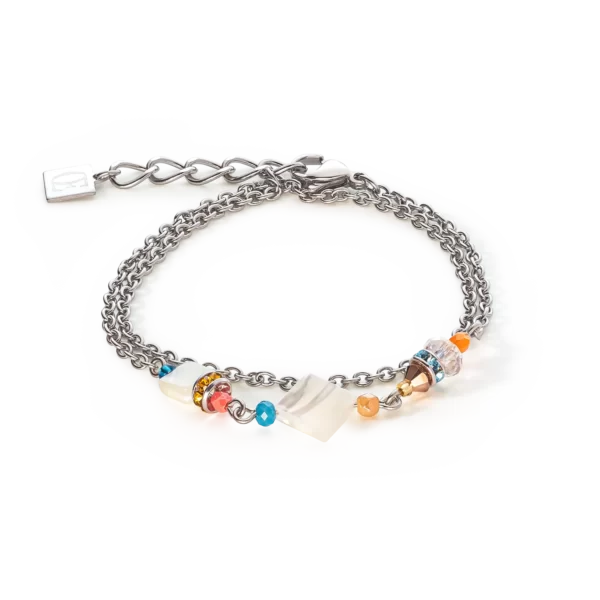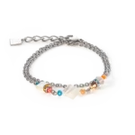 Inspirowana stylem boho chic, ta zachwycająca bransoletka to absolutny must have każdej letniej stylizacji. Błyszczące kryształy w orzeźwiających kolorach i elementy z masy perłowej dodają lekkości dwurzędowej bransoletce i przywołują na myśl niezapomniane dni na plaży.