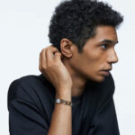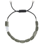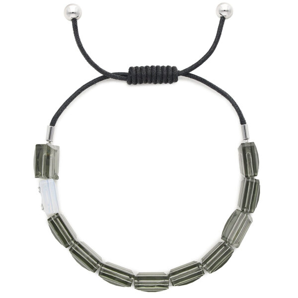 Kryształowa bransoletka Letra to nowoczesne spojrzenie na tradycyjne koraliki i symboliczne odniesienia. Kunsztownie wykonana z ciemnych kryształów w szlifie kwadratowym i wykończona regulowanym, woskowanym sznurkiem bawełnianym, jest ozdobiona nadrukowanym motywem podkowy.
