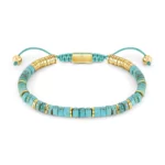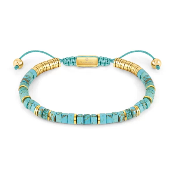 Bransoletka wykonana z najwyższej jakości stali szlachetnej z elementami pokrywanymi metodą PVD w kolorze żółtego złota oraz zdobiona turkusowymi kamieniami. Niezwykle trwała i wygodna w noszeniu. Kamienie oszlifowane są na wysoki połysk, będą idealnym kolorowym dodatkiem na każdą okazję. Będzie doskonałym wyborem także dla tych, którzy wierzą w magiczną moc kamieni naturalnych.