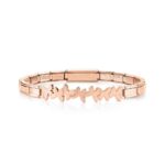 Bransoletka Nomination Italy z kolekcji Trendsetter Smarty Edition. Elastyczna bransoletka wykonana ze stali szlachetnej pokrywana powłoką PVD w kolorze różowego złota. Element ozdobny- blaszka z motylami. Połącz bransoletkę dowolnie z innymi produktami marki NOMINATION ITALY i stwórz swój niepowtarzalny zestaw!