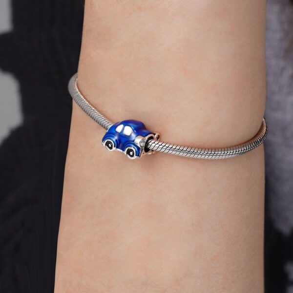 Przepiękny charms samochodzik. Element wykonany ze srebra próby 925 i pokryty niebieską emalią. Pasuje na wszystkie bransoletki modułowe.