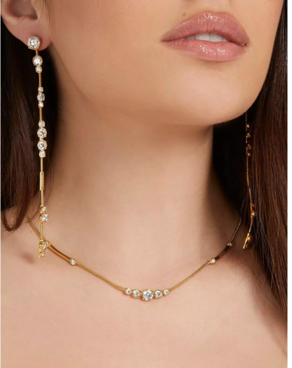 Kolczyki JUBE01400JWYGT/U to uroczy dodatek do każdej stylizacji. Wykonane są ze stali chirurgicznej, co gwarantuje wytrzymałość i trwałość. Kolczyki mają kolor srebrny i są zapinane na wygodny bigiel. Dwie linki w kolorze żółtego złota długości 13cm przyozdobione bezbarwnymi kryształami Swarovskiego.