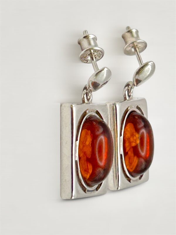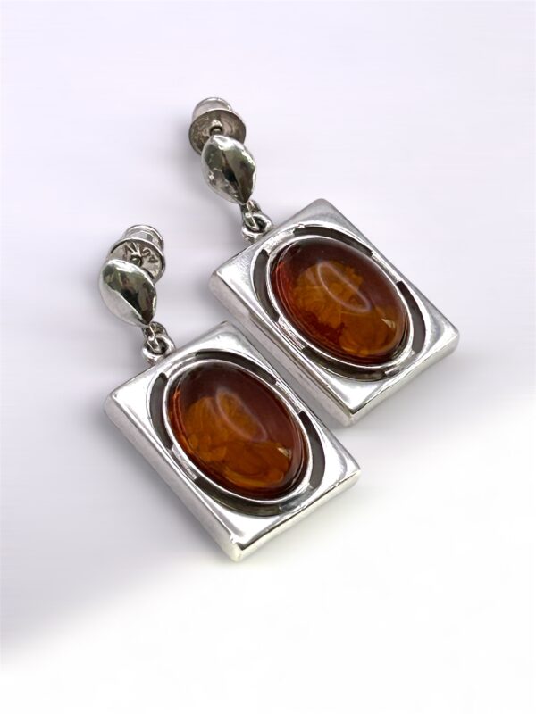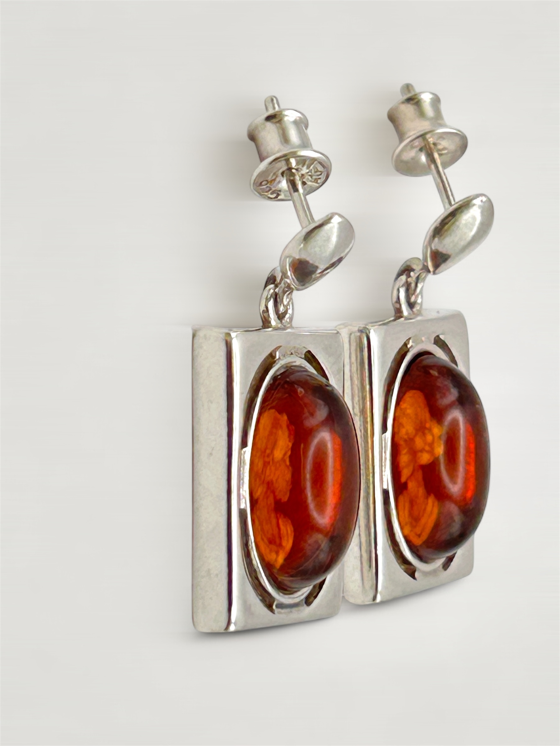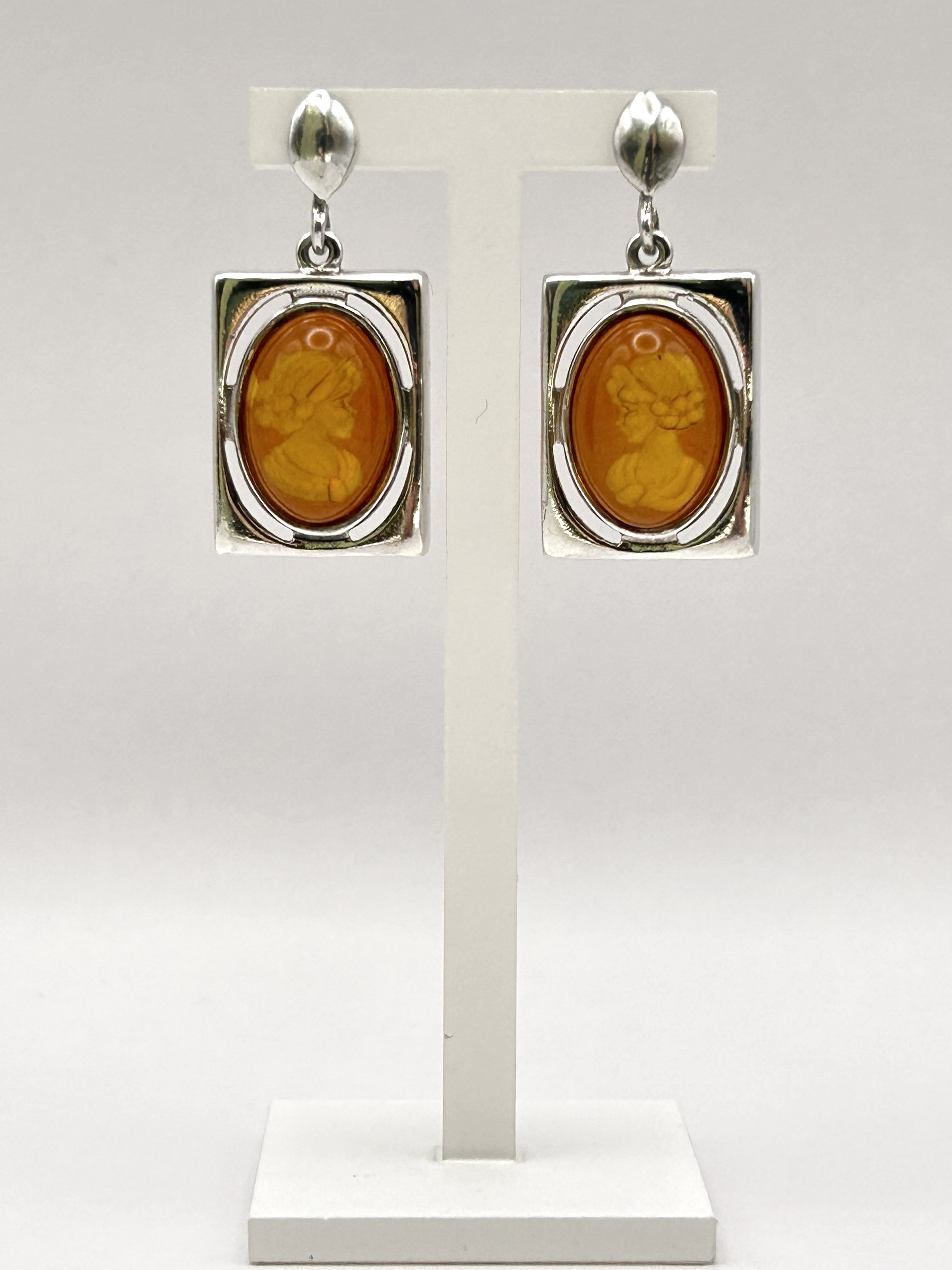Piękne kolczyki KAMEA – ręczna rzeźbiona POSTAĆ KOBIETY – w bursztynie naturalnym, oprawione w srebro