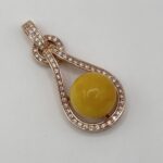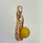 Subtelny wisiorek z z naturalnym bursztynem w kształcie KULKI – w kolorze cytrynowym, oprawiony w pozłacane srebro z cyrkoniami. Wisiorek zachwyca elegancją oraz starannym wykonaniem.