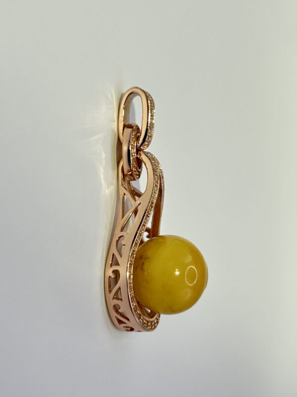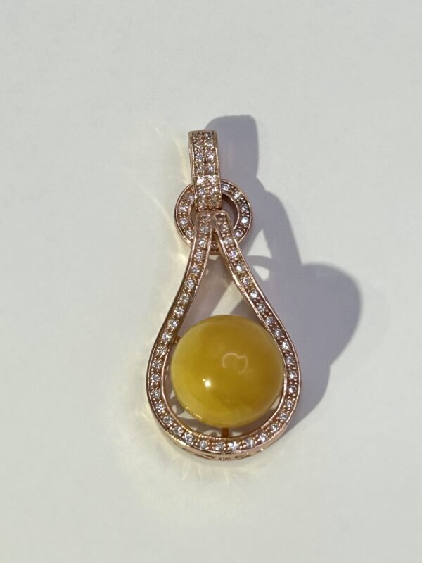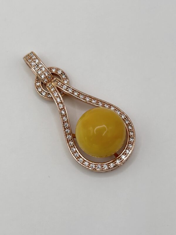 Kulka z bursztynu oprawiona srebrem z cyrkoniami