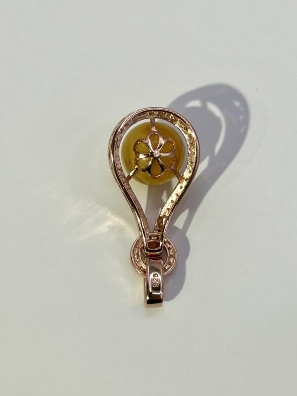 Wisiorek – KULKA z bursztynu oprawiona srebrem z cyrkoniami