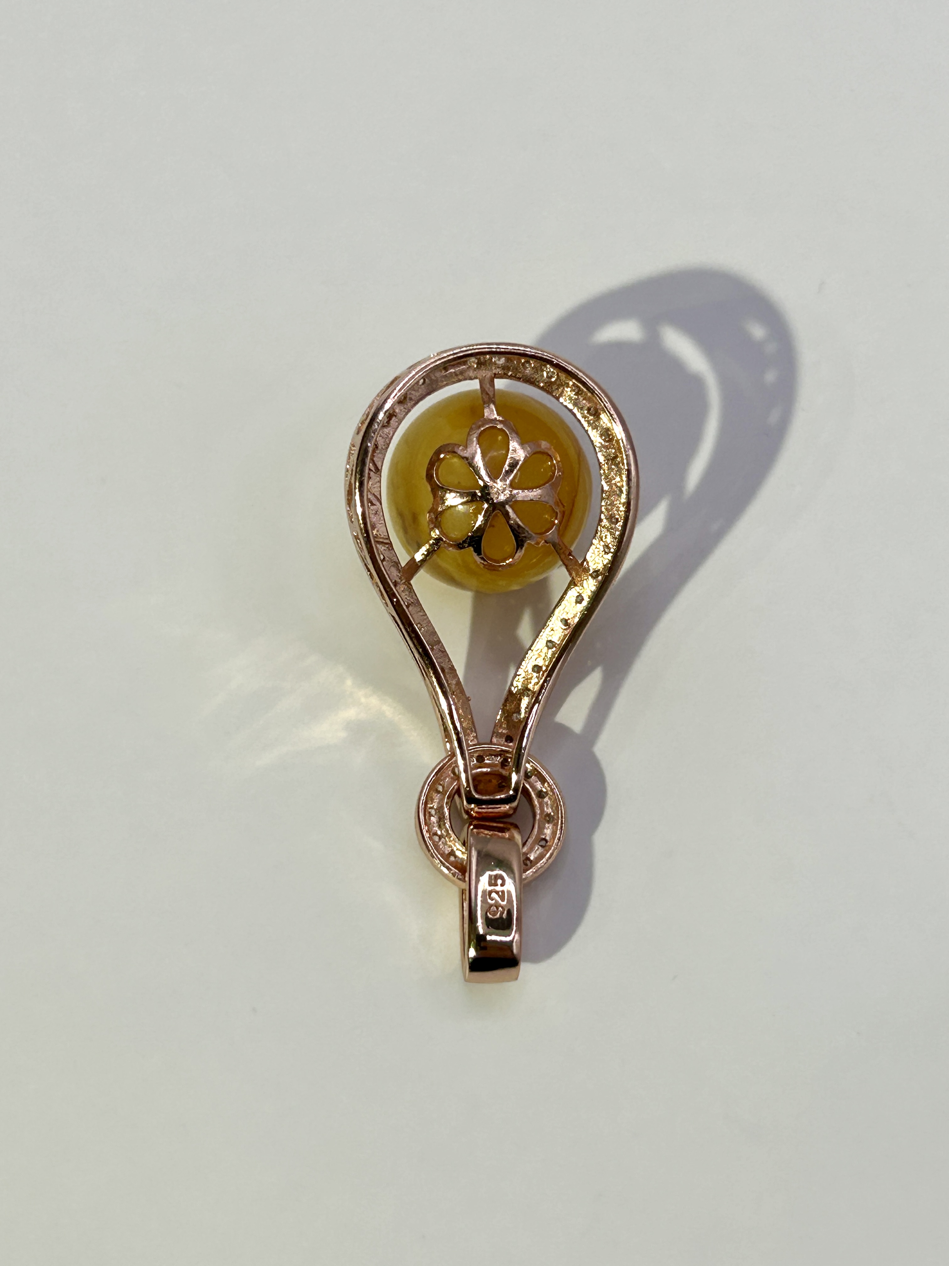 Kulka z bursztynu oprawiona srebrem z cyrkoniami