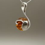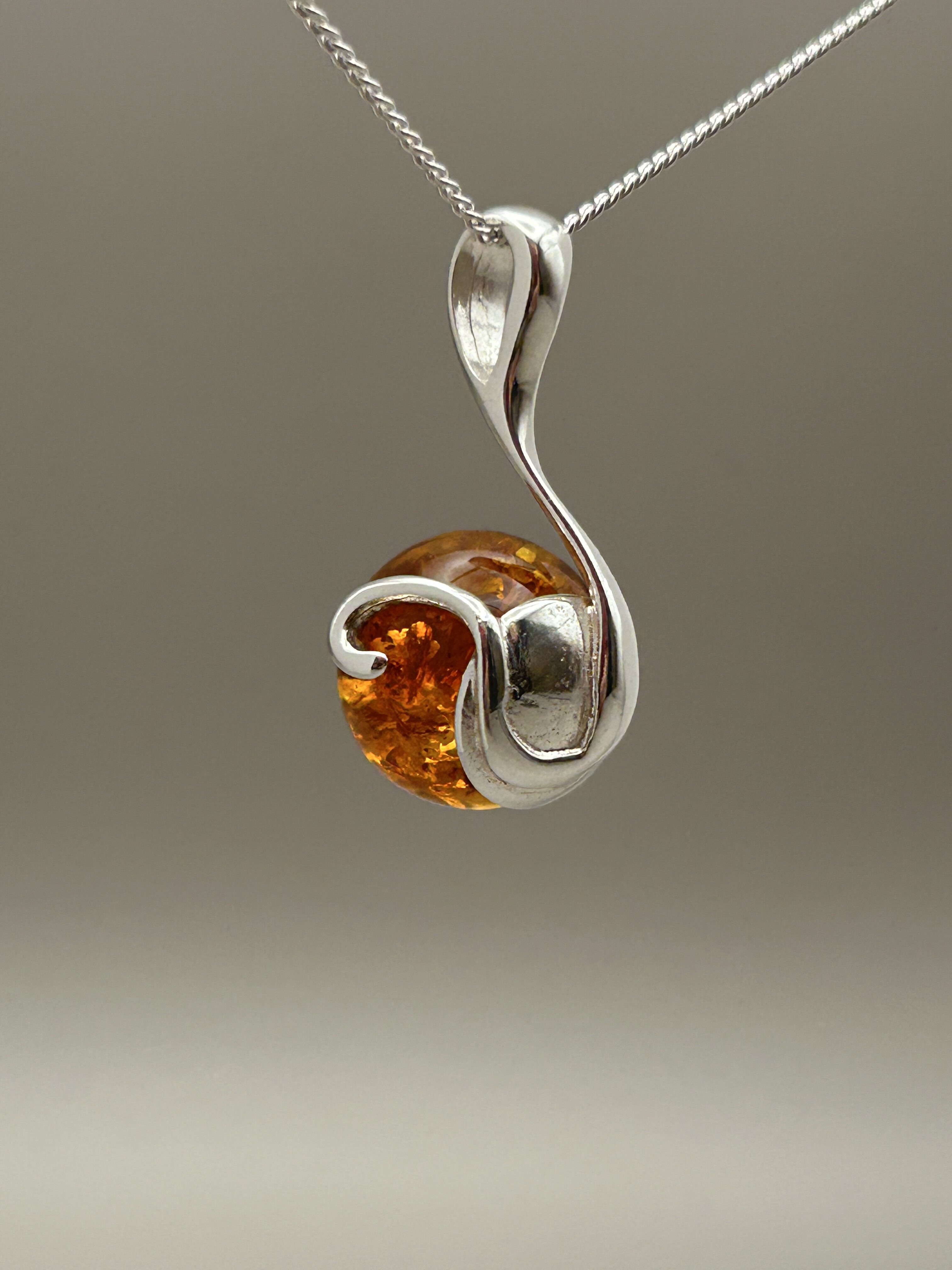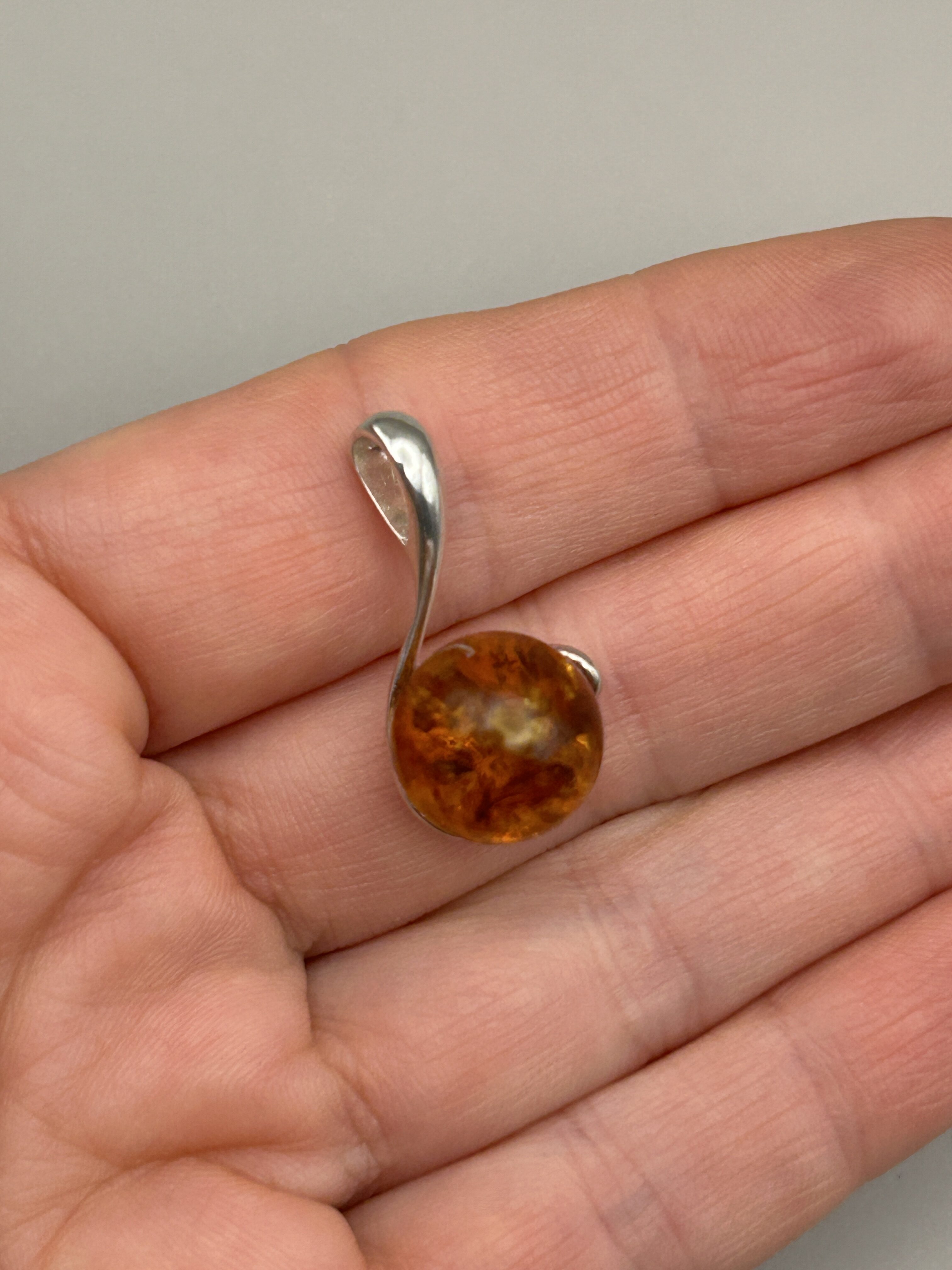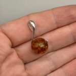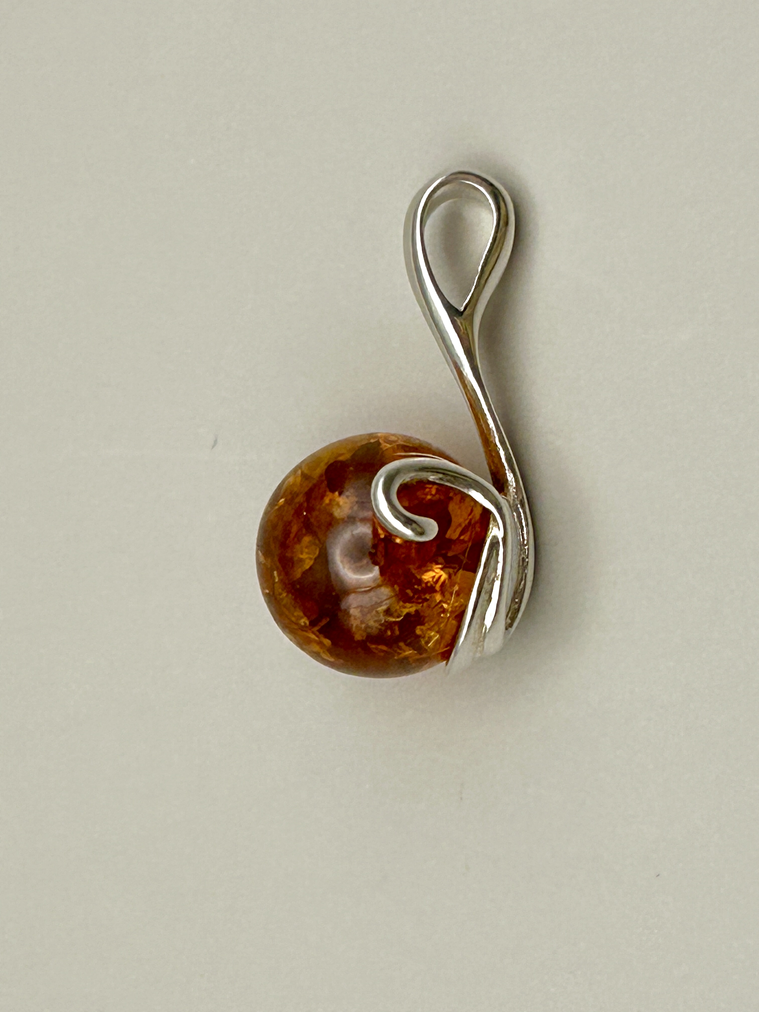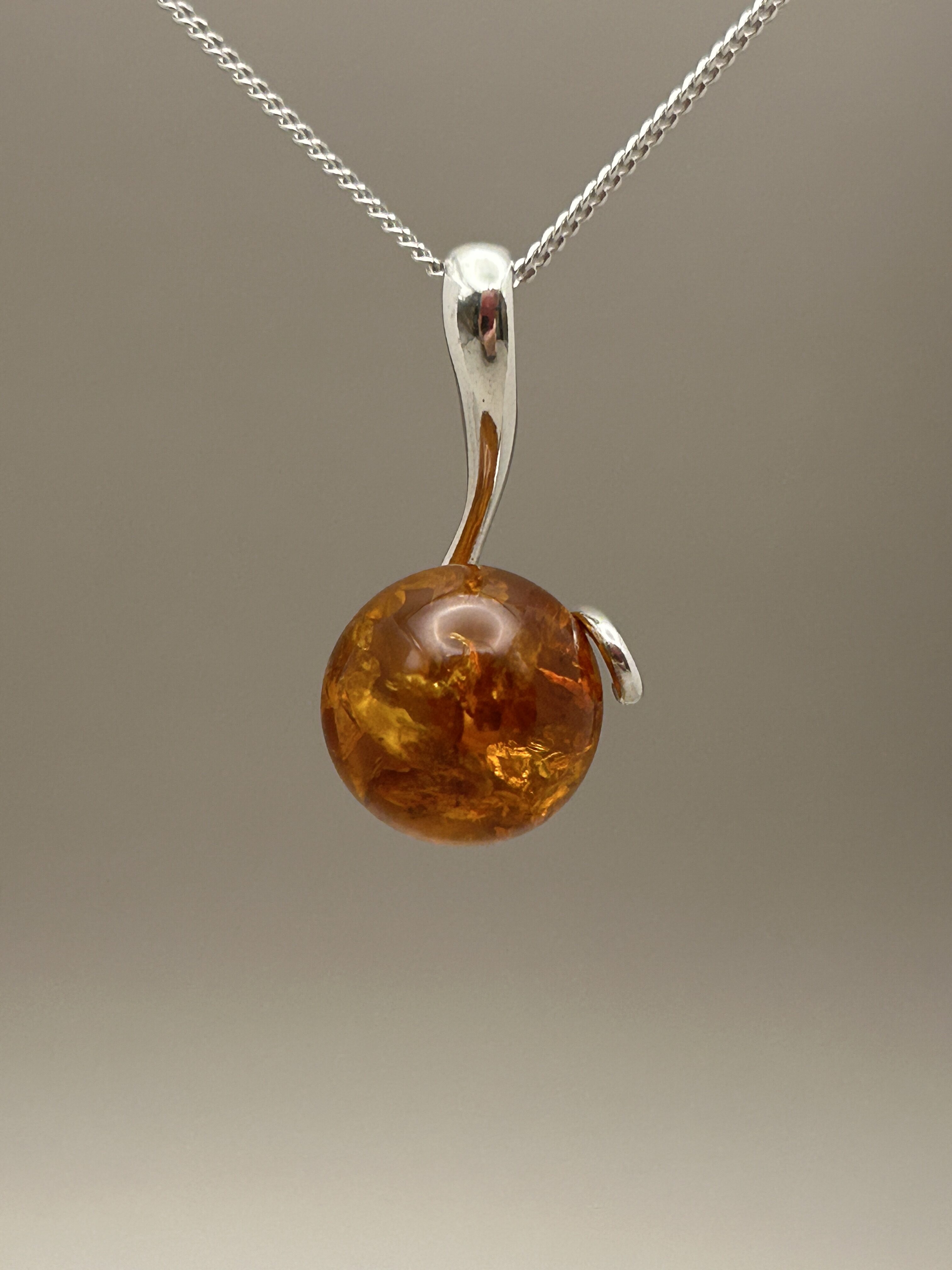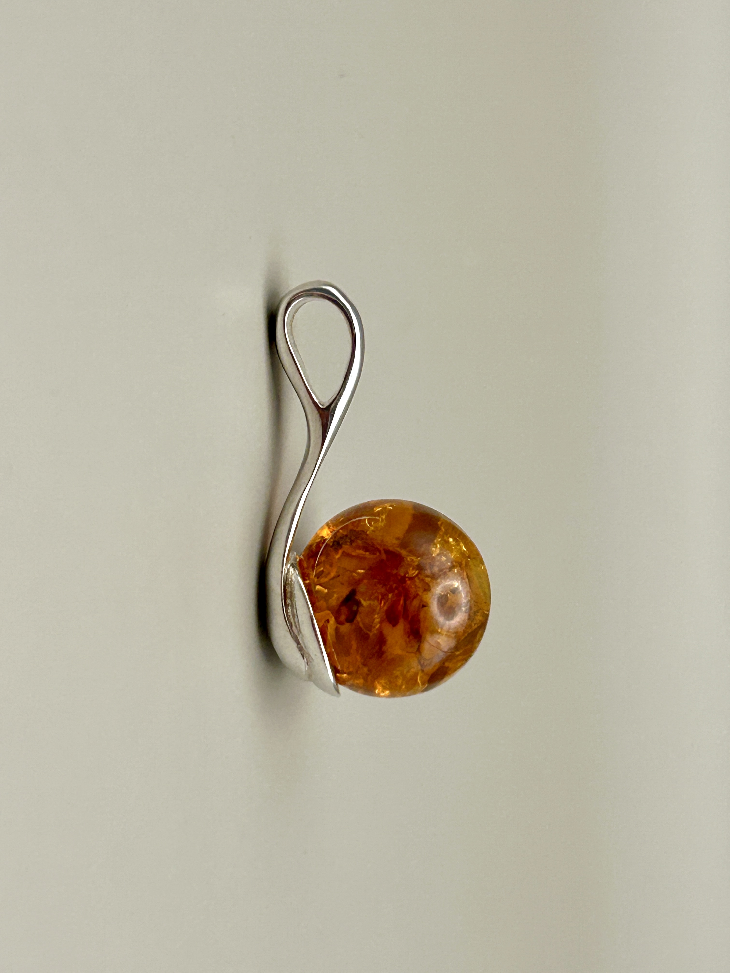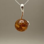 Wisiorek – KULKA z bursztynu oprawiona w srebro