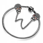Ręcznie wykonane ze srebra próby 925 nasze czaszki zostały zainspirowane meksykańskim świętem Day of the Dead. Będą wspierać każdą Twoją duchową podróż. Ten znaczący łańcuch bezpieczeństwa ułatwi zakładanie i zdejmowanie bransoletki, jednocześnie zapobiegając przypadkowej utracie uroków. Gnoce Designer tworzy intensywny wygląd, aby wyrazić zupełnie inny styl mody. Zaskocz już dziś wszystkich dookoła tym niepowtarzalnym urokiem tworząc swój własny oryginalny wygląd bransoletki. Jest to must have tego sezonu! Już dziś skomponuj swoją biżuterię platerowaną czarnym rutenem.