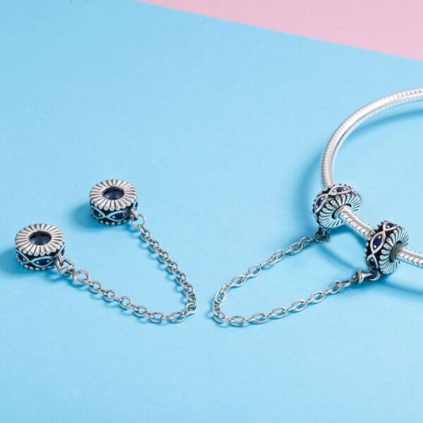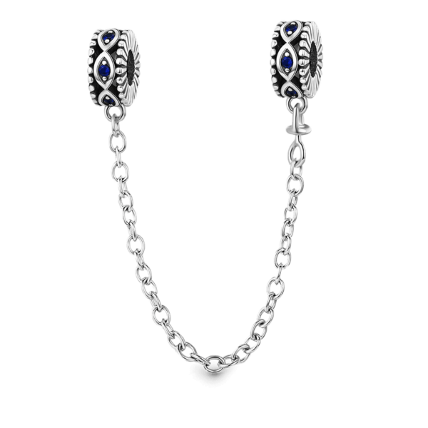 Przepiękny łańcuszek zabezpieczający z motywem niebieskich oczu.