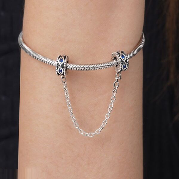 Łańcuszek pasuje do wszystkich bransoletek bez gwintów. Silikonowe inserty wewnątrz pierścieni uniemożliwiają samowolne przemieszczanie się pierścieni po bransoletce.