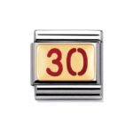 Oryginalny element do bransoletki komponowanej Nomination Composable Classic ze stali szlachetnej z cyfrą 30 w kolorze czerwonym z 18-karatowego złota i emalią.