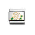 Moduł do klasycznej komponowanej bransoletki Nomination wykonany ze stali szlachetnej z białą różą z 18-karatowego złota i emalii.
