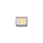 Moduł do klasycznej komponowanej bransoletki Nomination wykonany ze stali szlachetnej z literą “H” z cyrkoniami sześciennymi z 18-karatowego złota i emalii.