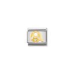 Moduł do klasycznej komponowanej bransoletki Nomination wykonany ze stali szlachetnej z literą “Q” z cyrkoniami sześciennymi z 18-karatowego złota i emalii.