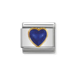 Moduł do klasycznej komponowanej bransoletki Nomination wykonany ze stali szlachetnej z sercem z lazurytu w oblamówce 18-karatowego złota.