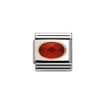 Moduł do klasycznej komponowanej bransoletki Nomination wykonany ze stali szlachetnej z fasetowanym czerwonym agatem w oblamówce 18-karatowego złota.