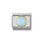Moduł do klasycznej komponowanej bransoletki Nomination wykonany ze stali szlachetnej z okrągłym turkusem w oblamówce 18-karatowego złota.