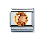 Moduł do klasycznej komponowanej bransoletki Nomination wykonany ze stali szlachetnej z okrągłą szampańską fasetowaną cyrkonią w oblamówce 18-karatowego złota.