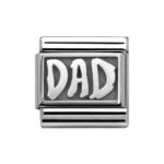 Oryginalny moduł do bransoletki komponowanej Nomination Composable Classic ze stali szlachetnej z napisem “DAD” ze srebra pr. 925.