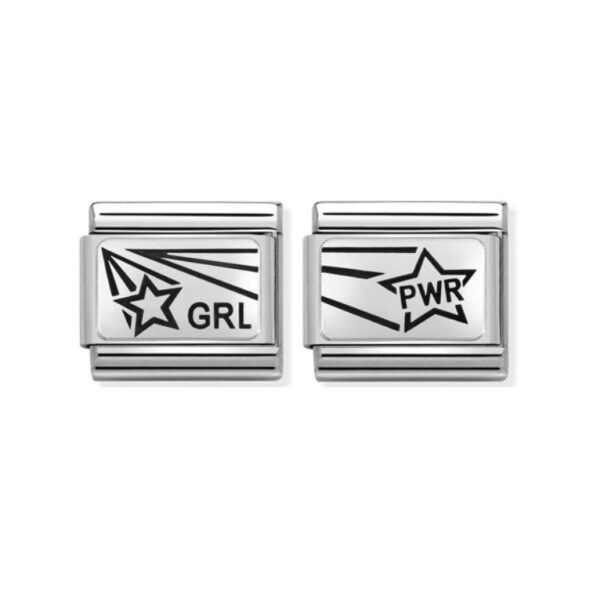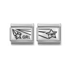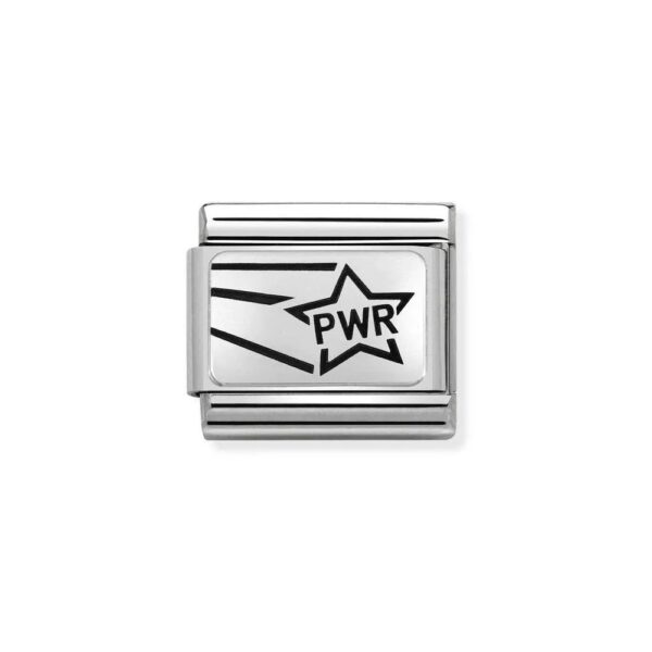 Oryginalny moduł do bransoletki komponowanej Nomination Composable Classic ze stali szlachetnej z gwiazdą i napisem “PWR” ze srebra pr. 925. Jeden z dwóch z serii GIRL POWER.
