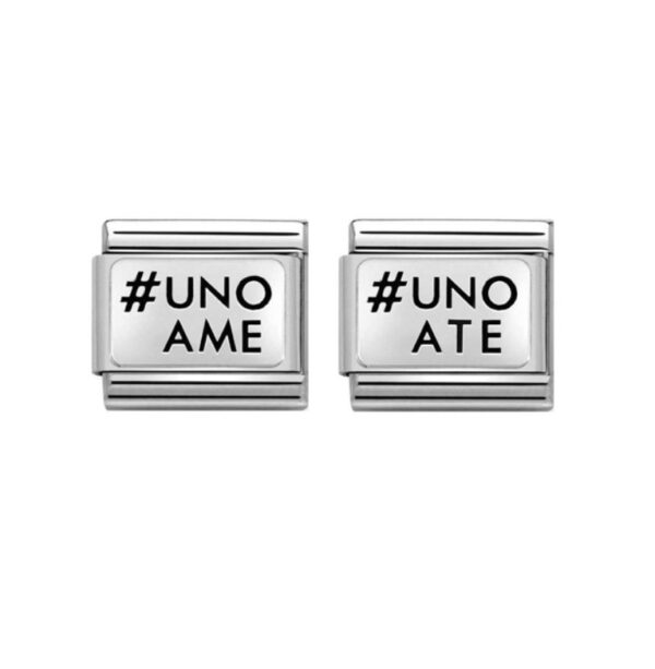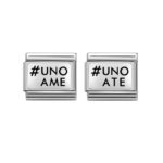 Oryginalny moduł do bransoletki komponowanej Nomination Composable Classic ze stali szlachetnej z napisem “UNO ATE” ze srebra pr. 925.