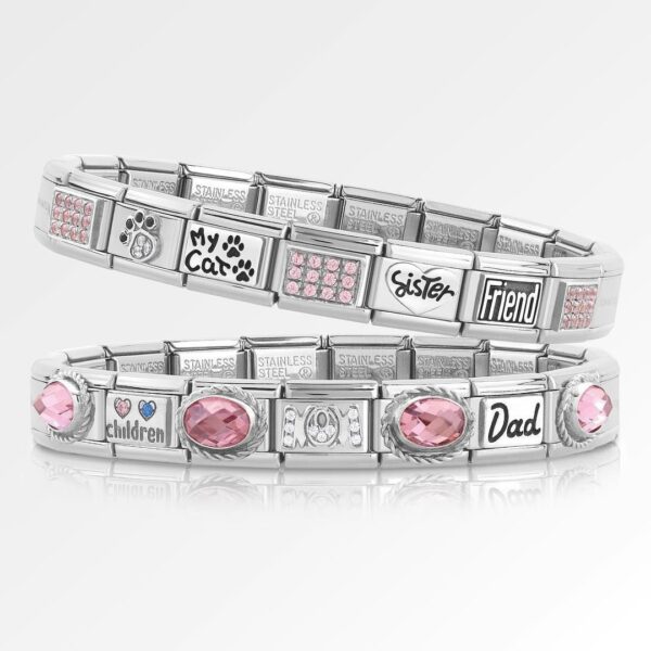 Bransoletki złożone są z kostek (linków) ze stali nierdzewnej powiązanych ze sobą za pomocą precyzyjnych połączeń. Bransoletkę można rozbudowywać według własnych upodobań. Na każdym elemencie może widnieć inna ozdoba; literka, postać, zwierzę, hobby, kamień itp.