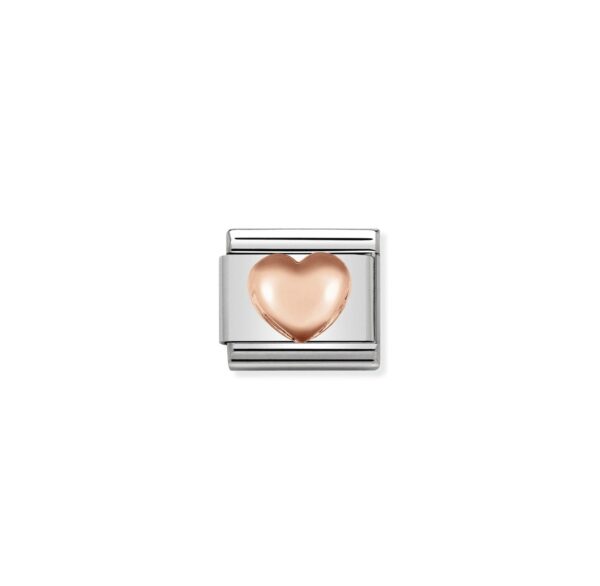 Oryginalny element do bransoletki komponowanej Nomination Composable Classic ze stali szlachetnej z wypukłym sercem z 9-karatowego różowego złota.