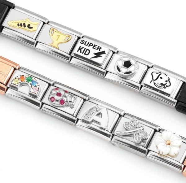 Bransoletki złożone są z kostek (linków) ze stali nierdzewnej powiązanych ze sobą za pomocą precyzyjnych połączeń. Bransoletkę można rozbudowywać według własnych upodobań. Na każdym elemencie może widnieć inna ozdoba; literka, postać, zwierzę, hobby, kamień itp.