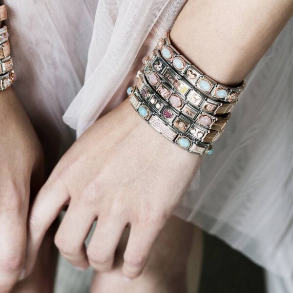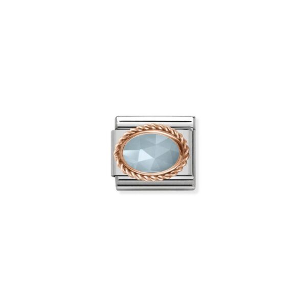 Element do bransoletki komponowanej Nomination Italy. Element wykonany ze stali szlachetnej i różowego złota, zdobiony mlecznym akwamarynem. Ten link to doskonały sposób na dodanie blasku Glamour do Twojej bransoletki.