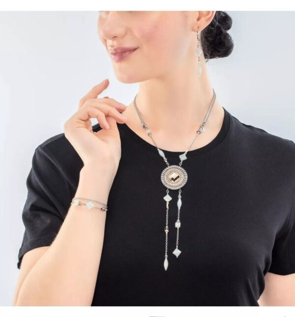 Damski naszyjnik boho Coeur de Lion Boho Amulet 6000/10-1523 to wyjątkowy dodatek wykonany ze stali szlachetnej 316L. Model przyciąga uwagę pięknym designem wzbogaconym o kryształki Swarovskiego. Ten subtelny dodatek świetnie dopasujesz do każdej stylizacji i dodasz jej blasku. To idealny prezent dla kobiety, która ceni sobie elegancką biżuterię i wyrafinowany styl.