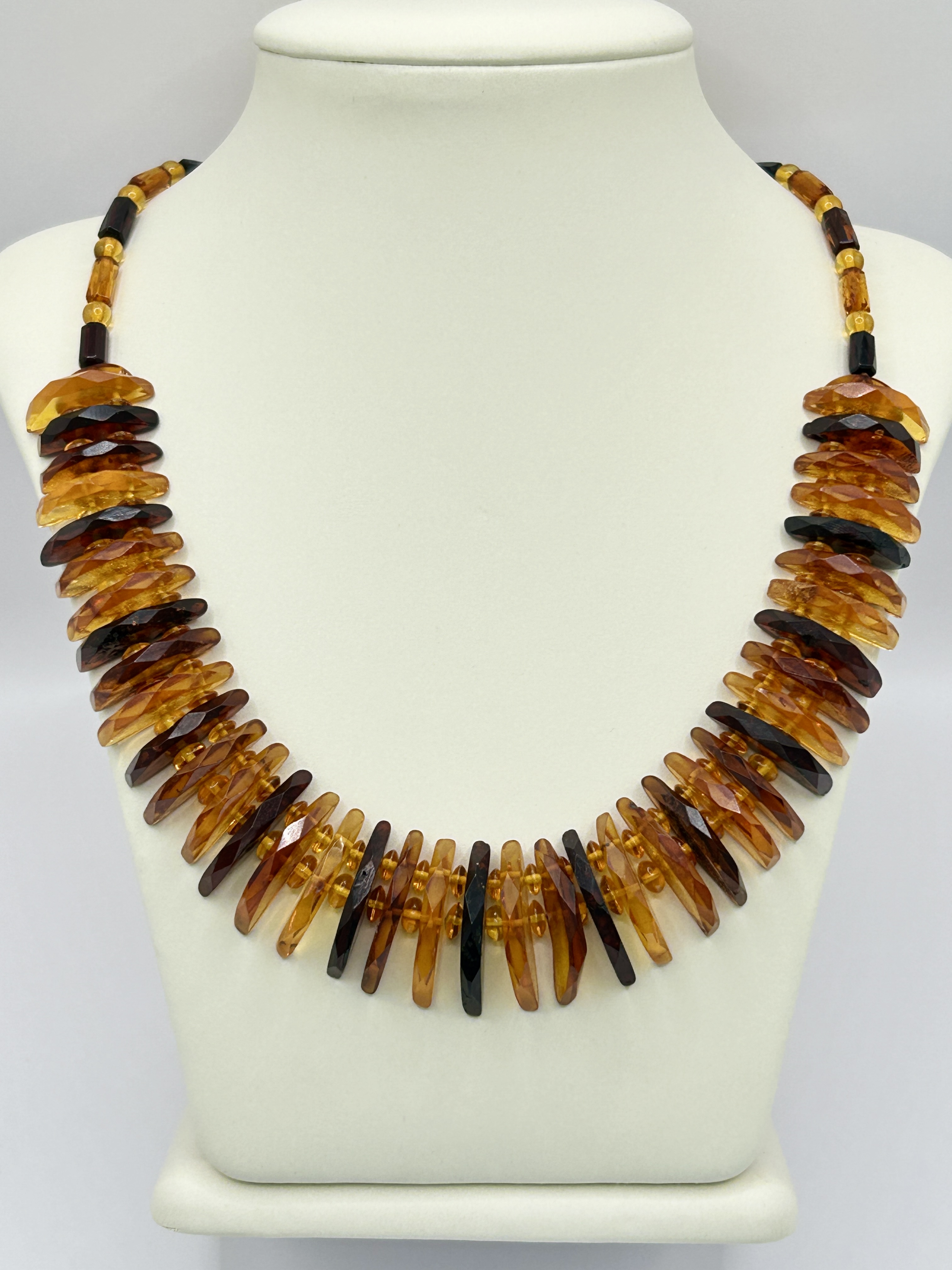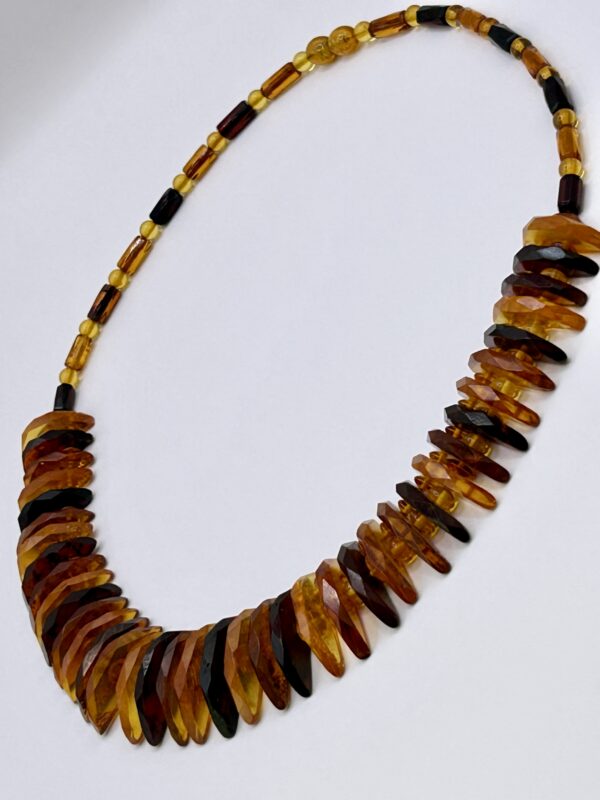 Ponadczasowy, elegancki naszyjnik z szlifowanego, fasetowanego bursztynu