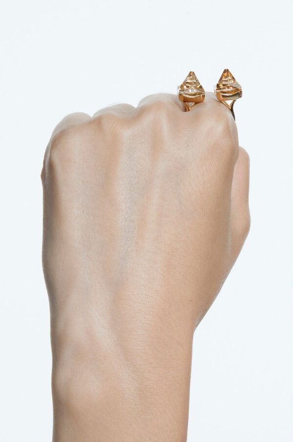 Pierścionek z kolekcji Swarovski. Model z ozdobą z kryształków wykonany z metalu.