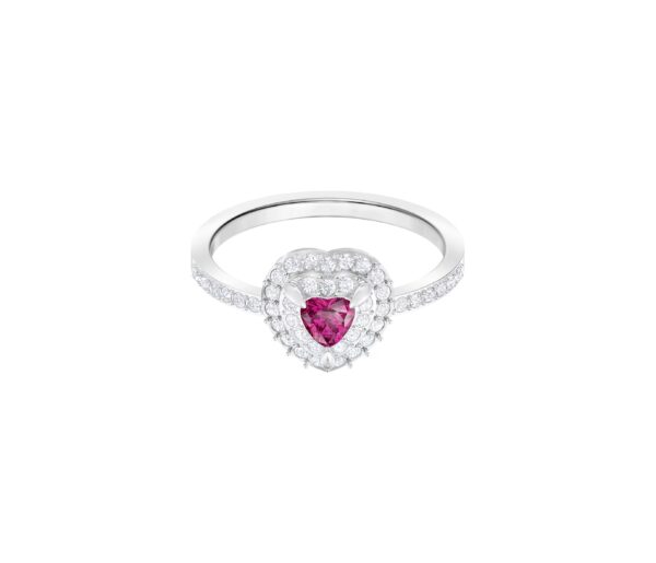 Pierścionek Swarovski Różowe serce pozłacany w kolorze różowego złota.