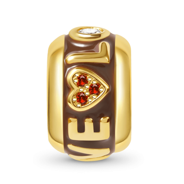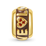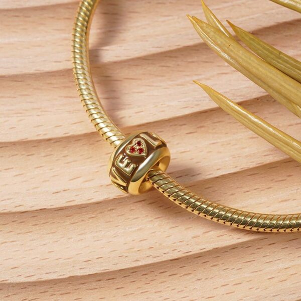 Przepiękny, pozłacany separator z napisem LOVE i czerwonym sercem. Element wykonany ze srebra p.925 pozłacany 18k żółtym złotem. Wewnątrz separatora znajduje się sylikonowy insert który uniemożliwia samoistne przemieszczanie się elementu na bransoletce. Separator służy do oddzielenia poszczególnych elementów jak również przyblokowanie pozostałych charmsów i zawieszek.