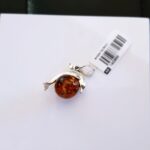 Śliczna srebrna ozdoba w kształcie delfina ze słonecznym bursztynem bałtyckim symbolizującym morską wodę. Lekki w formie wisiorek idealny dla eleganckiej kobiety.