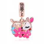 Cudowny jelonek z dodatkiem kwiatów jest wykonany ze srebra próby 925 i pokryty 18-karatowym różowym złotem. To jeden z najlepszych prezentów dla każdego, kto kocha bajkowe życie.