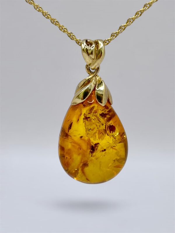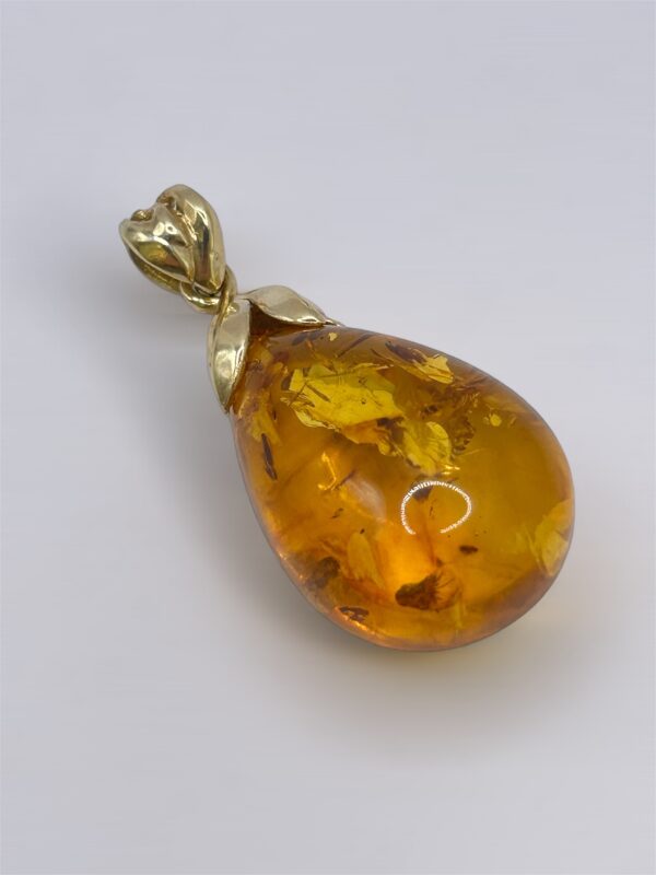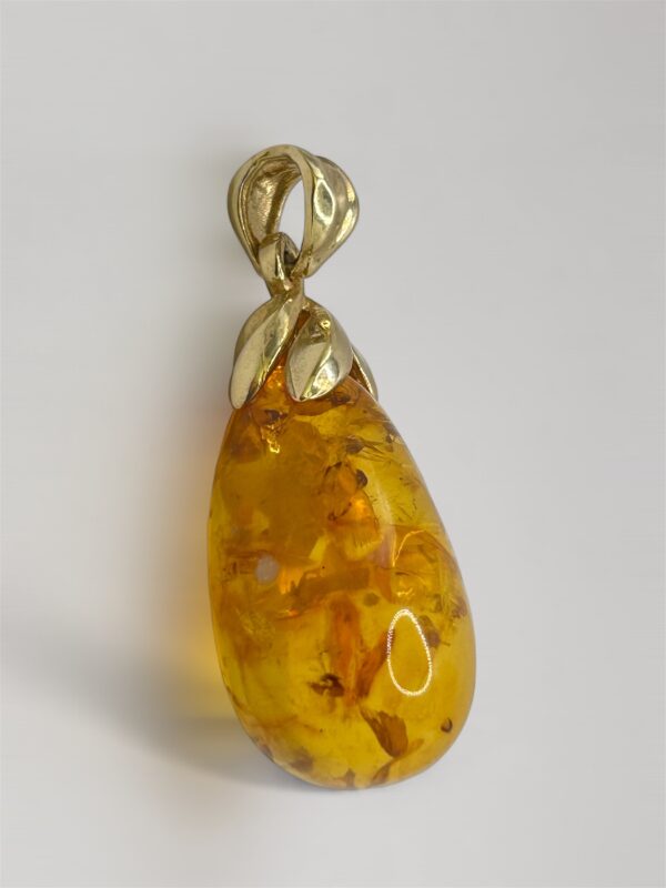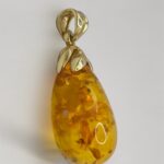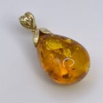 Wisior – bursztyn oprawiony w pozłacane srebro